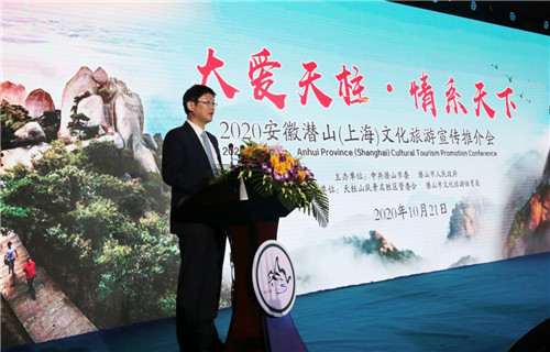 人民網(wǎng)上海10月21日電? ?今天上午,由中共潛山市委、潛山市人民政府主辦的“大愛(ài)天柱 情系天下” 2020安徽潛山(上海)文化旅游宣傳推介會(huì)在上海浦東新區(qū)舉行。潛山市委書(shū)記張勁松、上海市文化和旅游局宣傳推廣處處長(zhǎng)陳平致辭,市委副書(shū)記、市長(zhǎng)梅耐雪推介潛山全域旅游,市委常委、天柱山風(fēng)景區(qū)管委會(huì)副主任涂高生推介天柱山旅游,景域驢媽媽集團(tuán)董事長(zhǎng)、上海市安徽商會(huì)會(huì)長(zhǎng)洪清華講話。市領(lǐng)導(dǎo)黃銀枝、郭玉晟、陳茜、余永燦、邵偉民、汪世平、林斗喜、蔡婷婷、程赟、趙偉出席推介會(huì)。