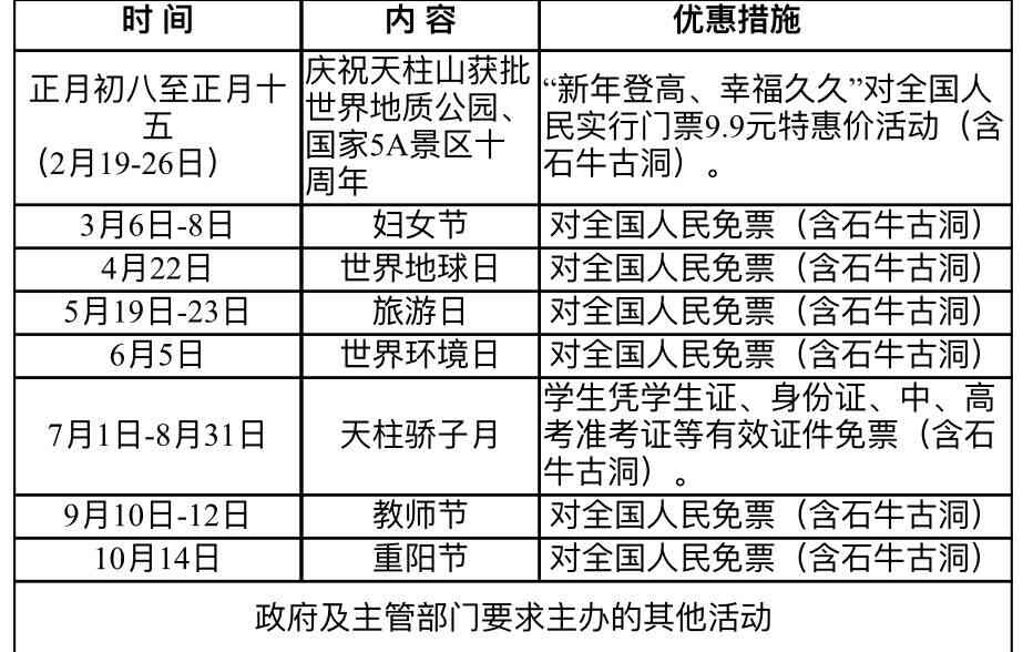 2、高鐵團(tuán)、飛機(jī)團(tuán)人數(shù)達(dá)到20人以上,憑地接社出具團(tuán)隊(duì)確認(rèn)書(shū)和高鐵票原件或機(jī)票原件,門(mén)票按全價(jià)票訂票,結(jié)算按40元/人,且包含石牛古洞。