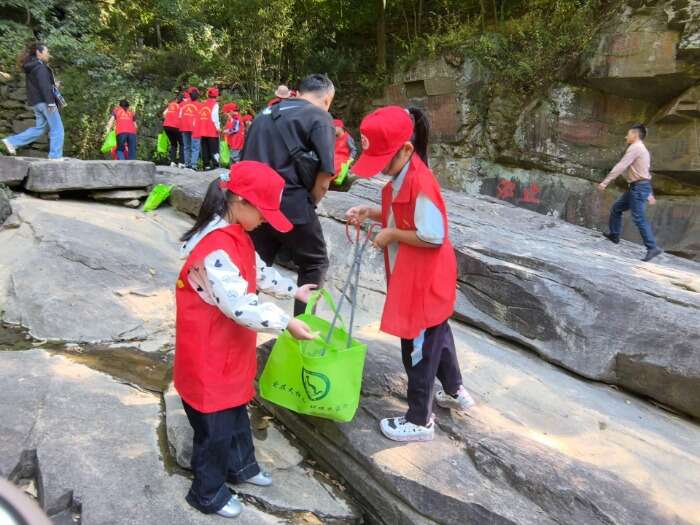 山谷流泉景區(qū)里,景區(qū)志愿者為招募而來(lái)的小學(xué)生志愿者穿上紅色小馬甲,戴上小紅帽,送上國(guó)旗貼紙和小國(guó)旗,并帶上火鉗、方便袋等小工具在景區(qū)拾撿垃圾,參與古箏學(xué)習(xí)、弈棋、朗誦古詩(shī)等豐富多彩的互動(dòng)志愿活動(dòng),一抹抹“中國(guó)紅”流動(dòng)在景區(qū)里,大家都感受到奉獻(xiàn)的快樂(lè),一粒?!皭邸钡姆N子悄然播種在小志愿者的心田。與此同時(shí),志愿者們還在山谷流泉文化園、天柱山地質(zhì)公園博物館開展免費(fèi)講解、宣傳天柱山歷史文化、天柱山故事等服務(wù)。